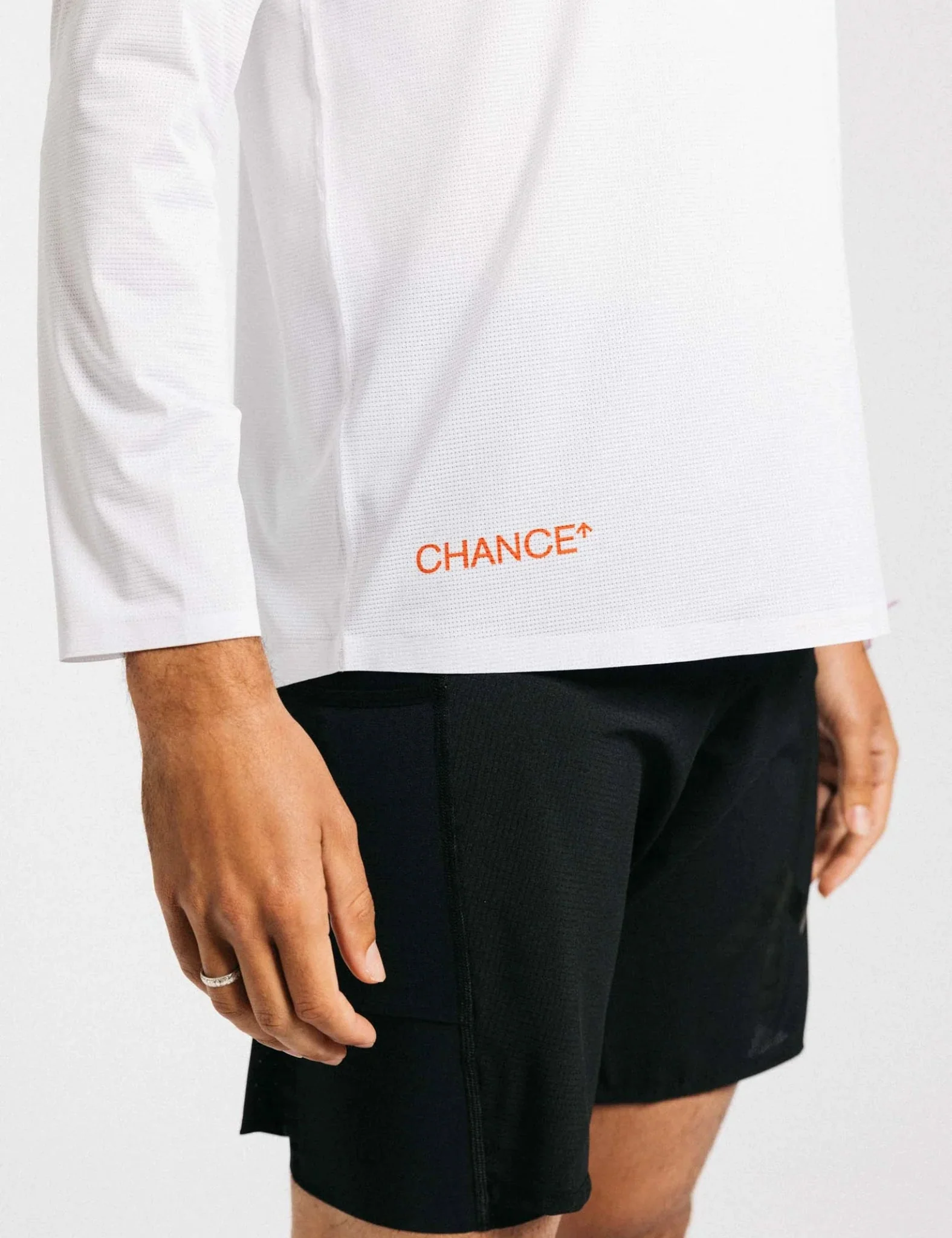 The Chance AROW Lightweight long sleeve t-shirt in white. Unleash Your Wanderlust with Our Advanced Race-Ready Gear. Whether you're conquering a brutal ultra marathon or simply testing your limits, our AROW Lightweight Tee is the ultimate choice.